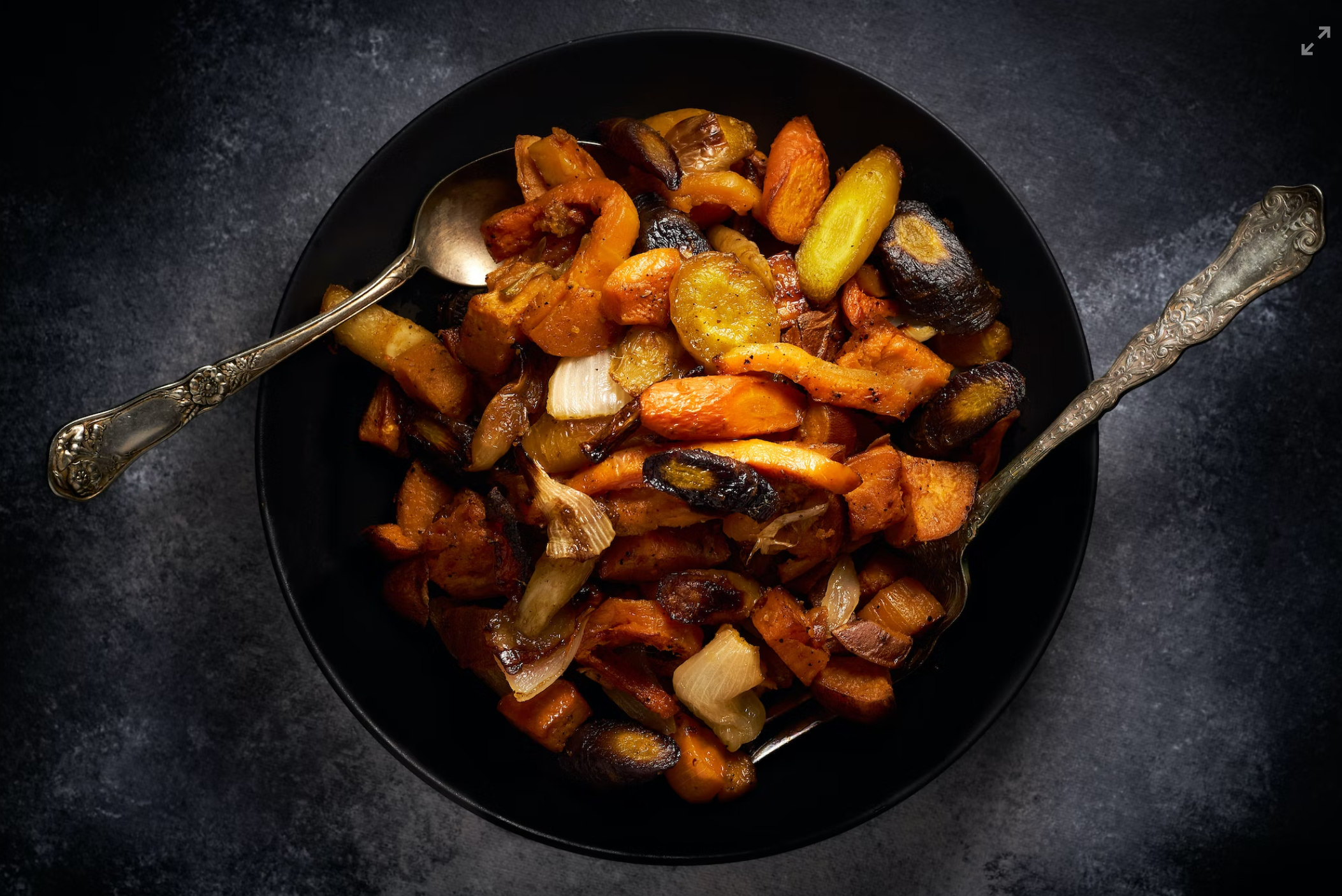 Our oven roasted root vegetable like carrot, sweet potato and potato in paprika, cumin, EVOO and garlic. (Vegan, GF, Soy Free, Nut Free, Sugar Free)