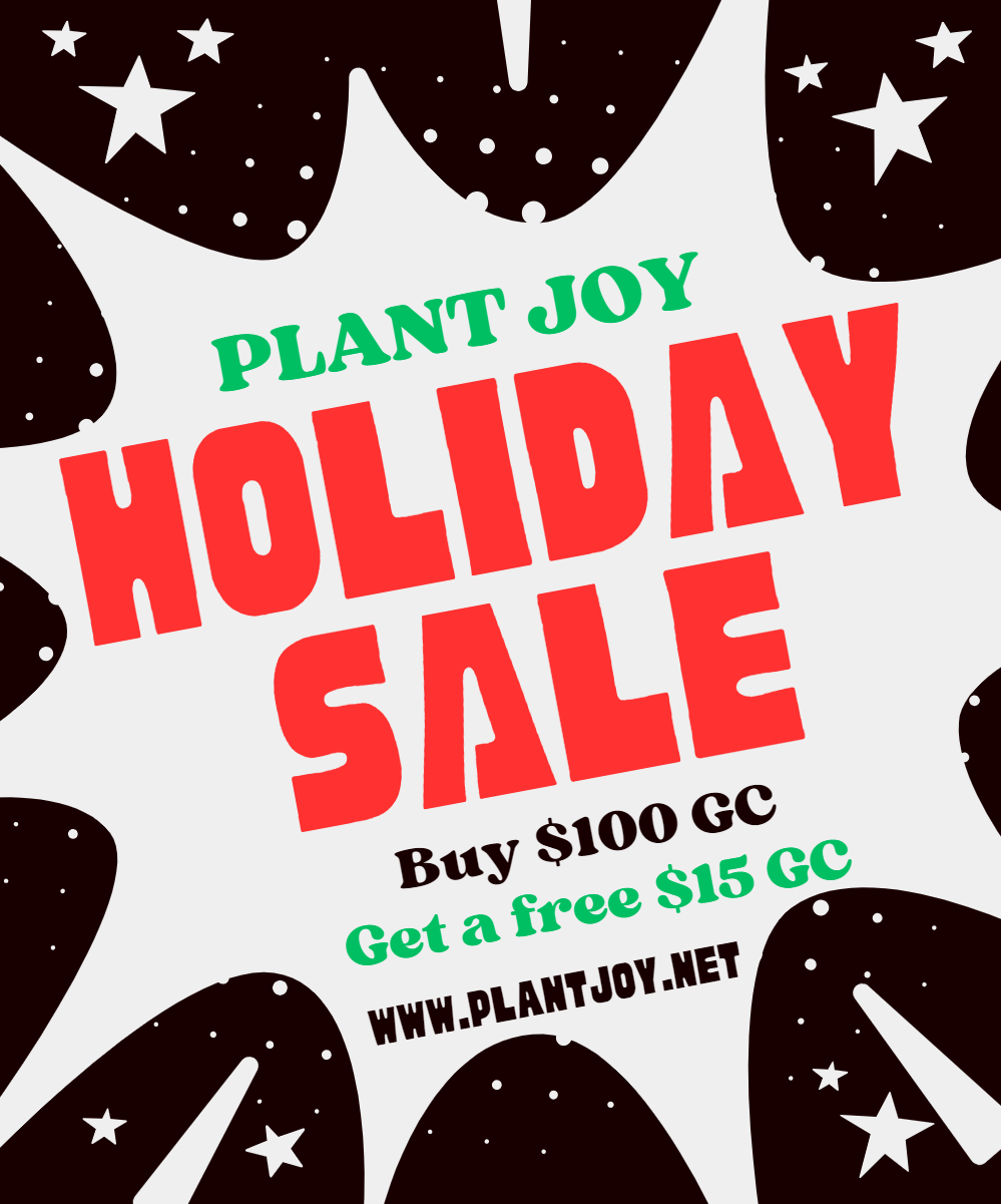 When you purchase a $100 PLANT JOY gift card you earn a FREE $15 gift certificate. Use it or gift it, either way - we thank you!!!